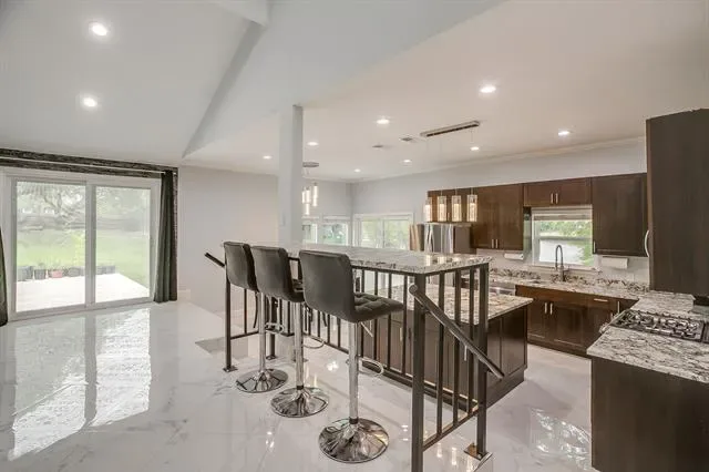 Sleek and stylish in Southlake, this rare opportunity sits on 0.8 acres just a short walking distance to Carroll Elementary. Enjoy private access to your very own picturesque pond where you can board a canoe and fish in your own backyard. This turnkey residence has been totally renovated with new cabinetry, tile, lighting, and countertops throughout. A beautiful stone accent wall surrounds the cozy fireplace. Perfect for entertaining, the open floor plan includes a wet bar in the living space and the extended back patio is ready for summer evenings overlooking the pond. A cute loft at the top of a spiral staircase is a fun bonus space. Modern conveniences like a tankless water heater, EV charger, and new windows provide efficient living. Large 23×19 shed in backyard sits on concrete slab. Surrounded by well maintained homes, with no HOA restrictions and easy access to everything Southlake has to offer, this is your chance to buy an incredible lot in coveted Carroll ISD to stay and enjoy or build a new custom home in a fantastic location.