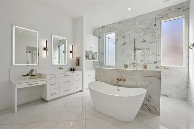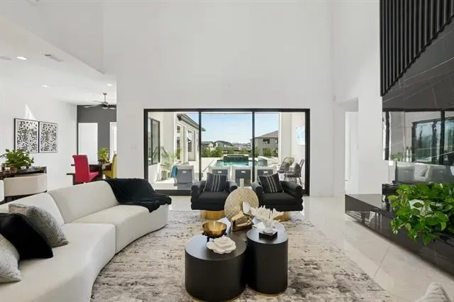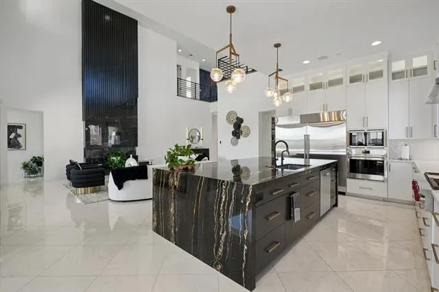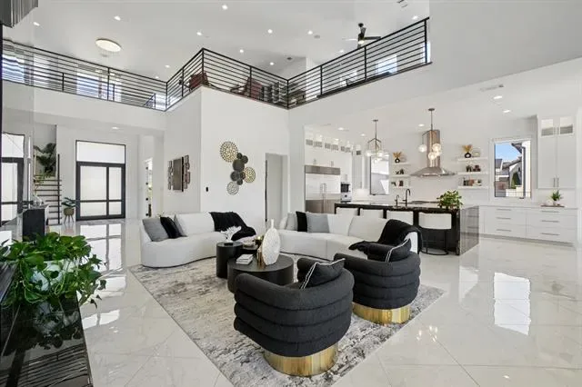In the gated Crescent Heights community of Southlake and award winning Carroll ISD, this exceptional modern custom estate offers upscale living minutes from Southlake amenities. Positioned on a .64 acre interior culdesac lot within walking distance to Bicentennial Park and The Marq Southlake. This home captures beautiful Texas sunset views and offers 7,328 square feet of thoughtfully designed living space. A striking stucco and stone exterior with custom iron and glass entry opens to soaring ceilings, custom floors, designer lighting and a dramatic wood &' stone fireplace anchoring the main living area. Open concept design blends modern architecture with refined finishes for elevated everyday living. The main level features the luxurious primary suite with spa inspired bath, freestanding tub, dual entry custom shower and separate walk in closets with direct utility room access. Two guest bedrooms, one serving as exercise room, also on 1st floor. Chef’s kitchen includes Wolf appliances, a six burner gas cooktop with commercial vent, Sub Zero refrigeration, custom cabinetry, peninsula island &' quartzite waterfall countertops, along with a full secondary catering kitchen, stainless appliances and private entry. First floor also includes a private media room, expansive game room, two dedicated offices with BI cabinetry, and four car garage access. Smart home automation and foam encapsulated insulation enhance comfort and efficiency throughout. Upstairs offers an open family room loft with built in snack bar and sweeping views of the living space below, three spacious ensuite bedrooms including one mini master suite, an additional living area, laundry room &' bonus 420sf of unfinished mini primary suite. Resort style backyard features a covered patio, overlooking the pool, spa &' fireplace lounge, outdoor kitchen with gas grill and dining area. Southlake living at its finest where timeless style, exceptional craftsmanship and vibrant community lifestyle come together.