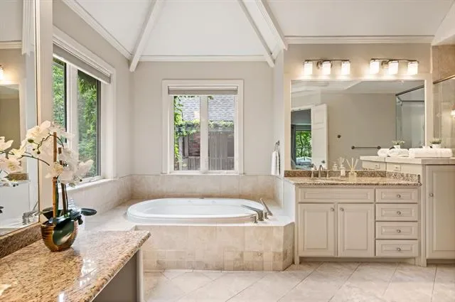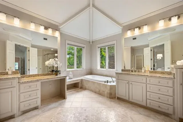Built-in Features, Chandelier, Decorative Lighting, Double Vanity, Kitchen Island, Loft, Natural Woodwork, Vaulted Ceiling(s), Walk- In Closet(s), Wet Bar
