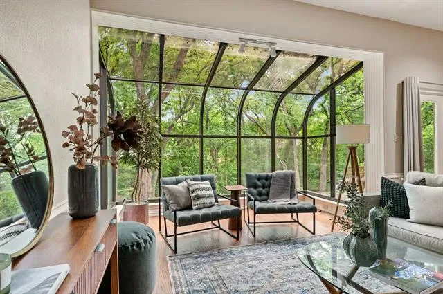 The formal living and dining rooms introduce structure and scale, transitioning into the main living areas. An office with a loft is set within this flow, offering a refined and functional workspace.The master suite is positioned for privacy, where the setting feels most still, with views through the trees and along the water’s edge. The master bath continues that connection, opening toward the pool and open acreage. Three additional bedrooms are arranged along a separate hallway, offering comfort and privacy for family or guests. At the center, a sunroom connects everything, opening directly to the backyard and pool and extending the living spaces outward.