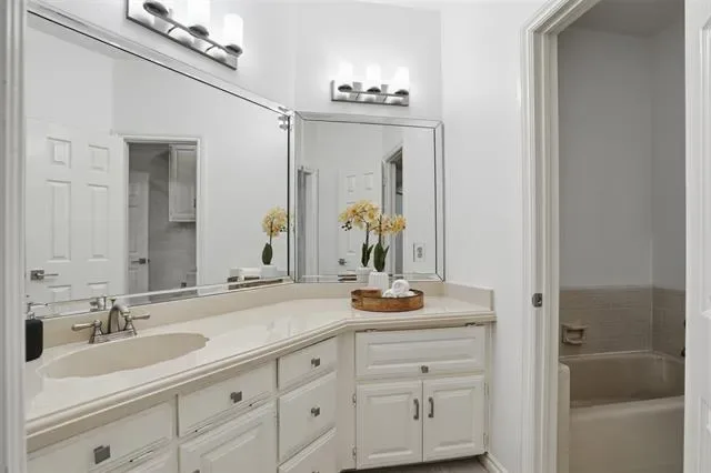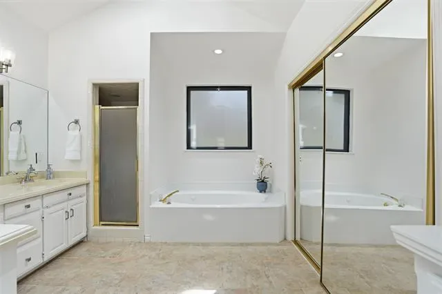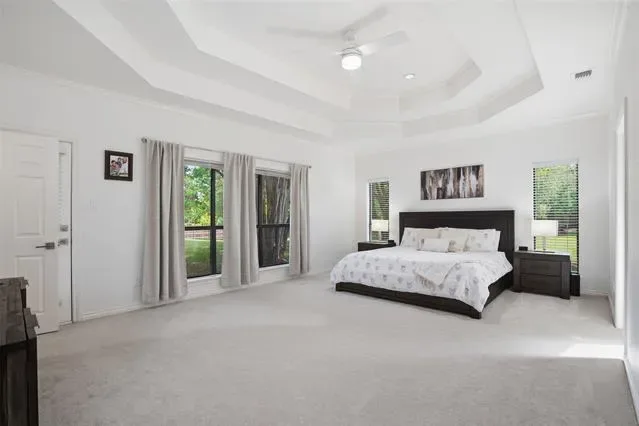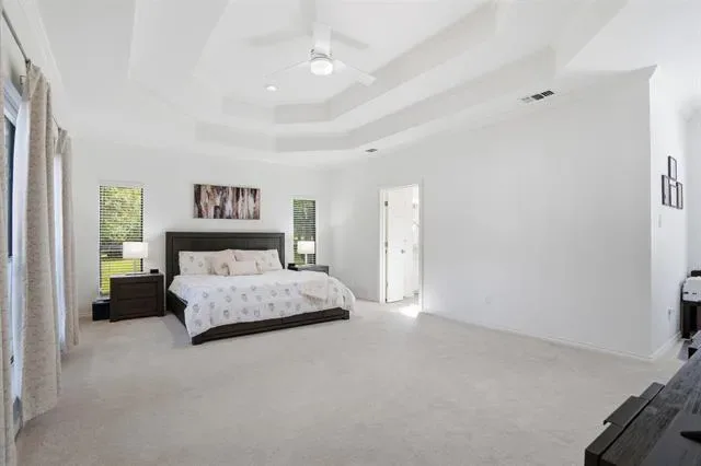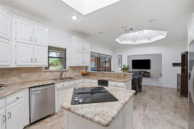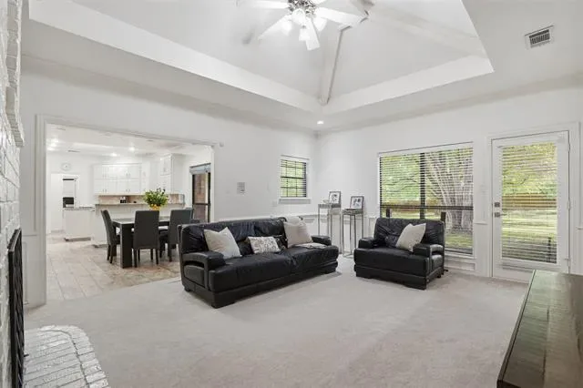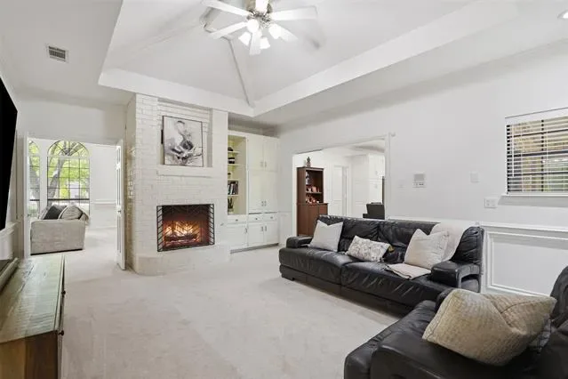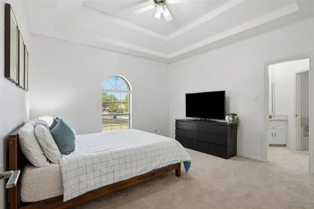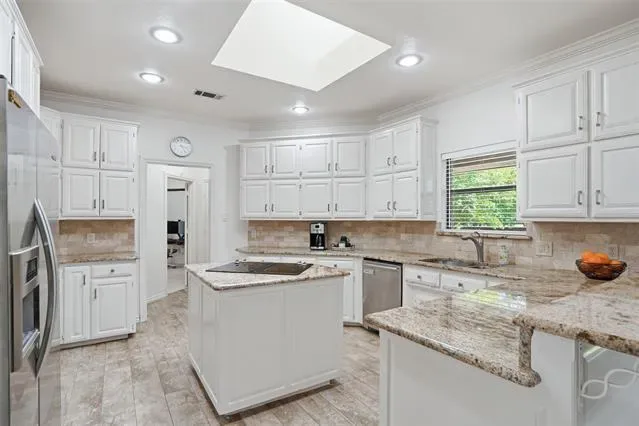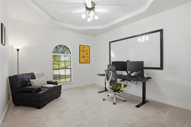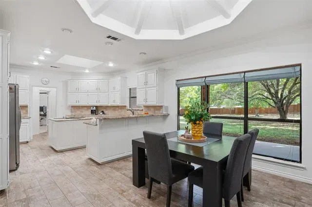 The oversized primary suite serves as a private retreat, complete with a versatile sitting area, perfect for a home office, fitness space, or cozy reading nook. Secondary bedrooms are tucked away in a separate wing, each featuring walk-in closets to provide privacy and convenience. At the heart of the home, the kitchen is well-appointed with granite countertops, stainless steel appliances, abundant cabinetry, and a charming breakfast nook, seamlessly connecting to the main living area. Step outside to an expansive backyard shaded by mature trees and enhanced with a sprinkler system, offering endless possibilities for a future pool or custom outdoor living space. Additional highlights include two HVAC units replaced in 2022 and an oversized three-car garage with epoxy floors. Ideally located just minutes from premier dining, shopping, and DFW International Airport.