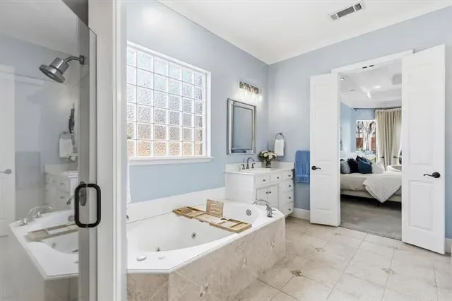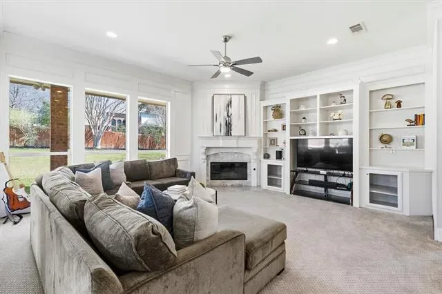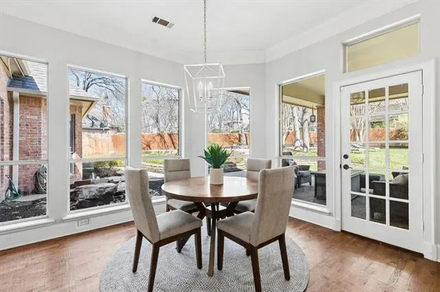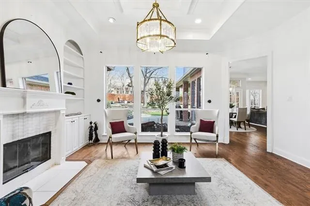 Experience timeless elegance in the heart of Southlake, perfectly positioned within Carroll ISD. Nestled on nearly half an acre, this exceptional residence offers privacy, luxury and sophistication. Your private outdoor sanctuary has been thoughtfully curated. Mature trees &' landscaping surrounds covered patios, multi-level seating areas, &' generous green space! The heated pool and spa complete this tranquil, park-like retreat. Inside, natural light pours through expansive windows enhancing the home’s effortless flow. Enjoy dual living areas with fireplaces &' custom built-ins, an executive private office with French doors &' custom millwork, &' a large formal dining room. The gourmet kitchen blends style and function with stainless steel appliances, double ovens, island, breakfast bar, walk-in pantry, Italian marble backsplash, &' updated fixtures and finishes. The first-floor primary suite is a serene escape, featuring a spa-inspired bath &' an expansive walk-in closet. You’ll enjoy a second full bath and bedroom down. Upstairs, you’ll find two ensuite bedrooms &' a show-stopping game room with coffered ceilings—ideal for movie nights! There are elevated finishes throughout. Luxury is found in the details, custom millwork, built-ins, plantation shutters, hand-scraped hardwood floors, travertine finishes, extensive storage throughout (including a remarkable upstairs storage room), updated lighting, ceiling fans, &' brushed nickel fixtures, new upstairs carpet (July 2022), updated pool heater and equipment (2022). An electronic driveway security gate enhances both privacy &' curb appeal, while the three-car garage &' additional parking provide flexibility. Ideally located near scenic walking trails, upscale shopping, fine dining, and DFW Airport! This home delivers luxury living with everyday convenience &' offers space, sophistication &' timeless design in one of North Texas’ most sought-after communities. This is more than a home — it’s the lifestyle you’ve been waiting for!
