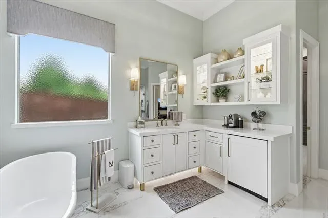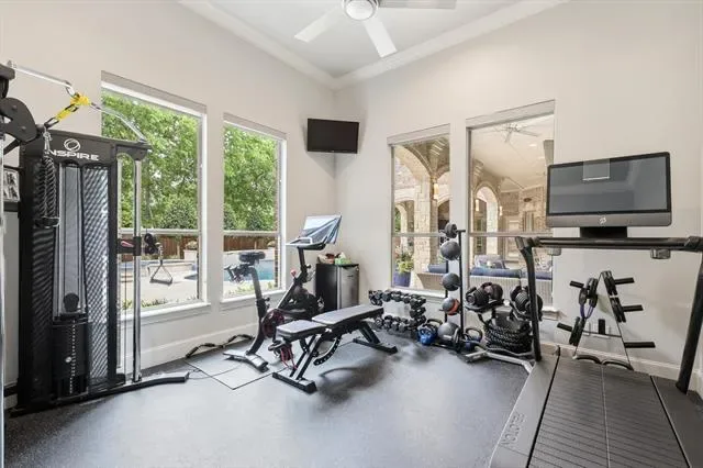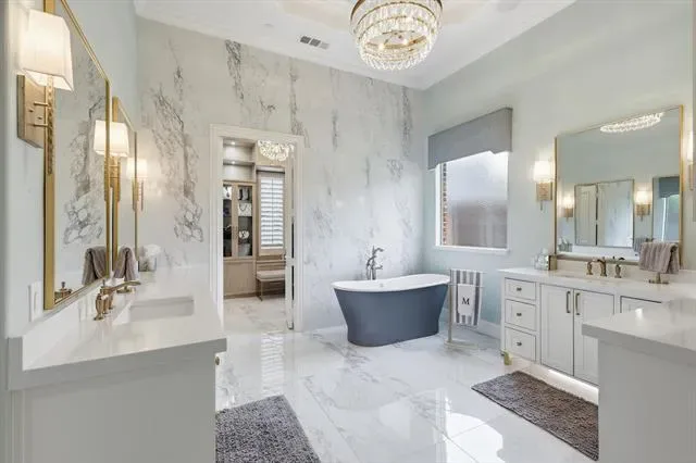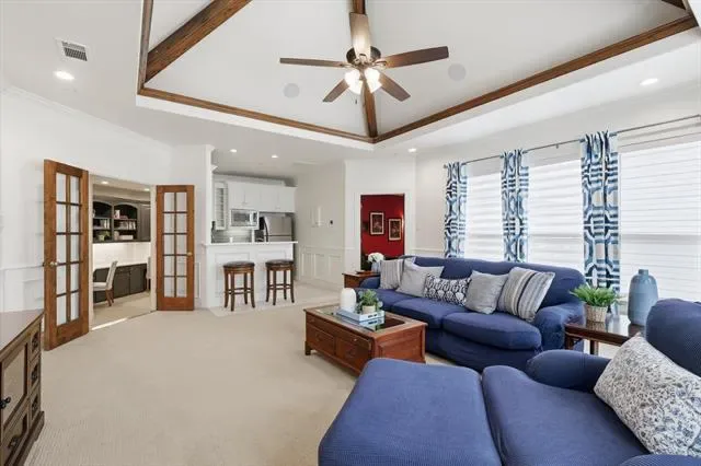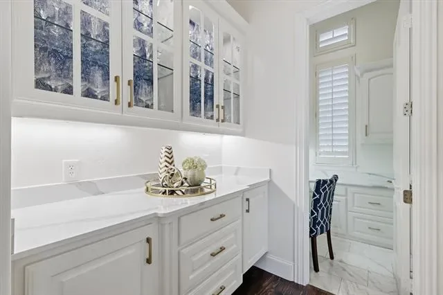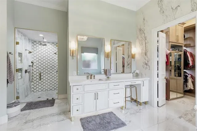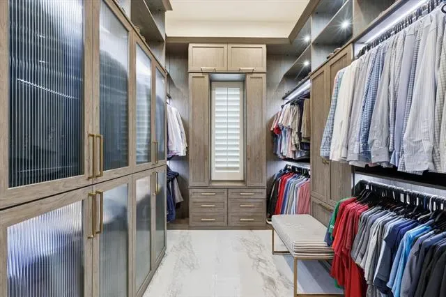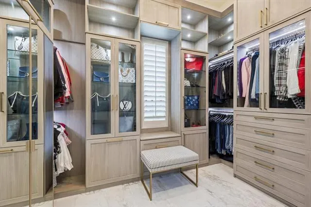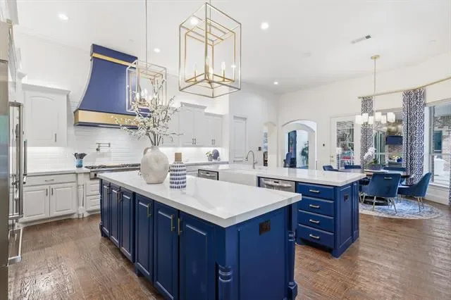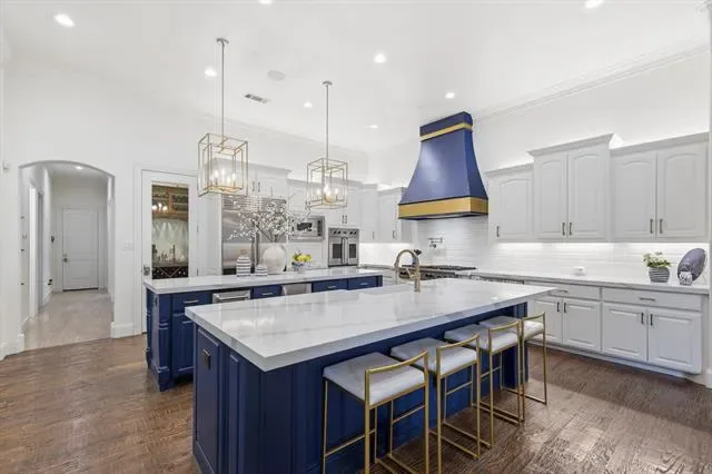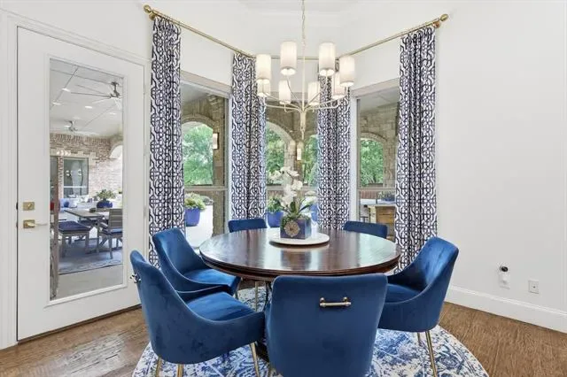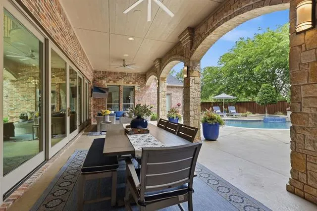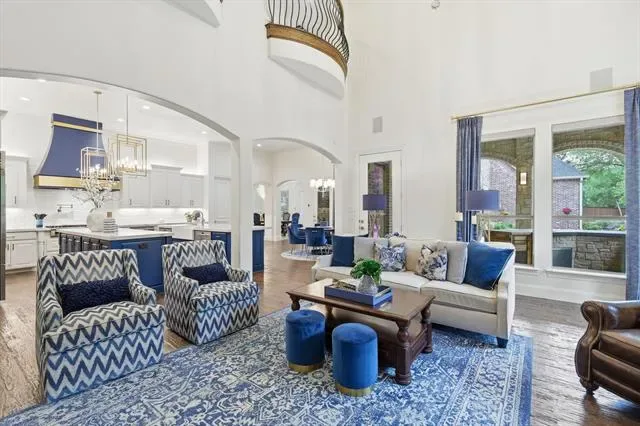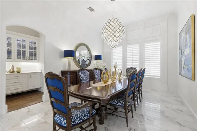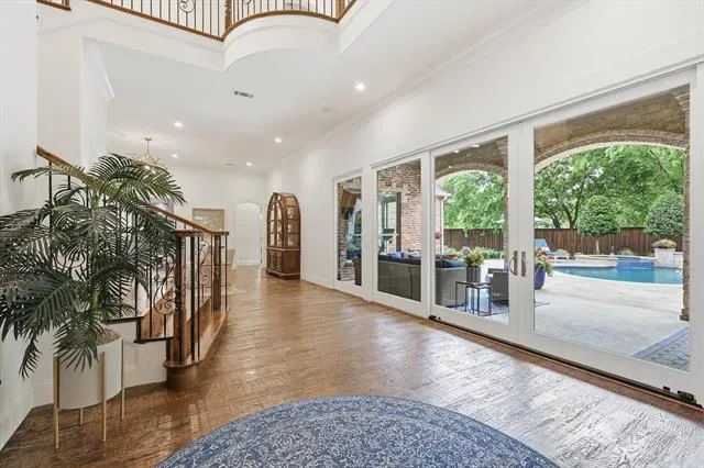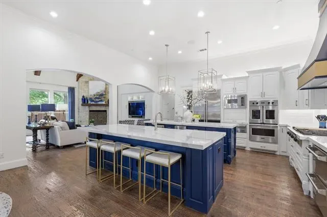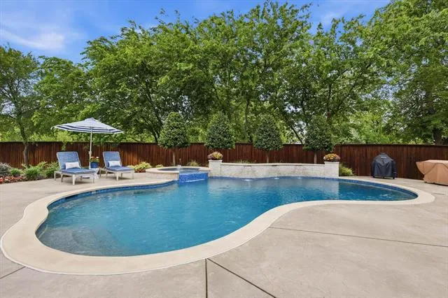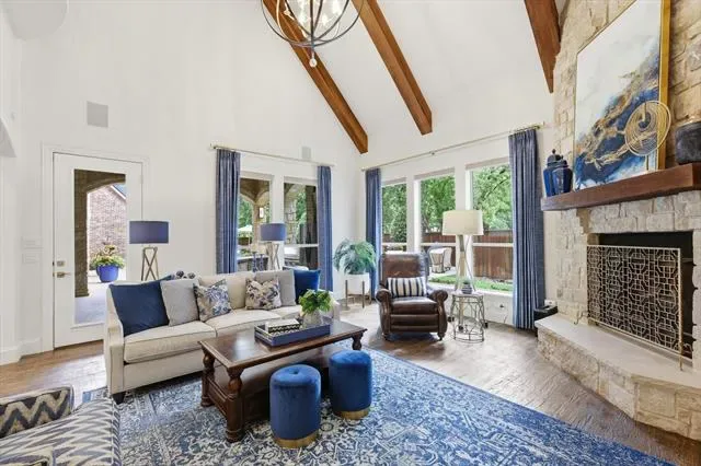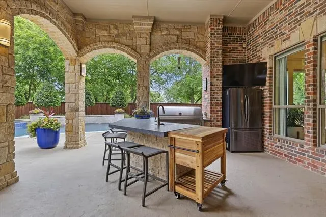 Set on a private, oversized .738-acre homesite in the heart of Southlake, this extensively upgraded estate offers a rare combination of refined interiors and exceptional outdoor living. The home showcases hand-scraped hardwood floors, marble and travertine finishes, custom cabinetry, designer lighting and exquisite chandeliers, and architectural details including wood beams and soaring ceilings. The main living area is anchored by a gas stone fireplace and flows seamlessly into the kitchen, creating an ideal space for both everyday living and entertaining. The chef’s kitchen is designed for both function and presentation, featuring Sub-Zero refrigeration, Viking appliances, dual islands with custom cabinetry, marble finishes, a butler’s pantry, and a spacious walk-in pantry. The private primary suite offers direct backyard access and a spa-inspired bath with freestanding tub, oversized marble shower with dual heads and rain feature, double vanities, and custom his and hers walk-in closets. Upstairs includes a game room with full kitchenette, media room, study area, and flexible living spaces, offering versatility for both entertaining and everyday use. All secondary bedrooms have ensuite bathrooms and walk-in closets. The backyard is designed for year-round enjoyment with a beautifully updated pool and spa, outdoor kitchen, multiple seating areas, and extensive landscape and tree lighting, creating a private setting for relaxation and gatherings. Additional highlights include a 2024 roof, smart pool automation, electric gate, security system with cameras, 4-car garage, generous storage throughout, and dedicated wine and beverage storage. Located within Carroll ISD and in one of Southlake’s most desirable areas.