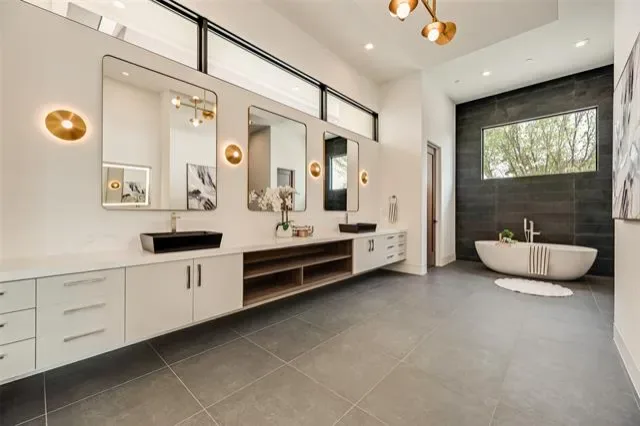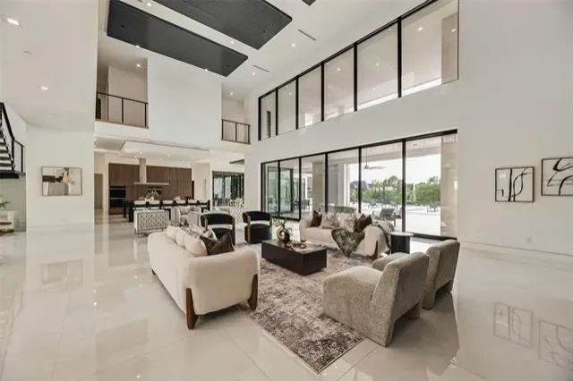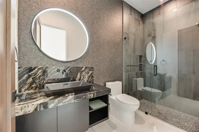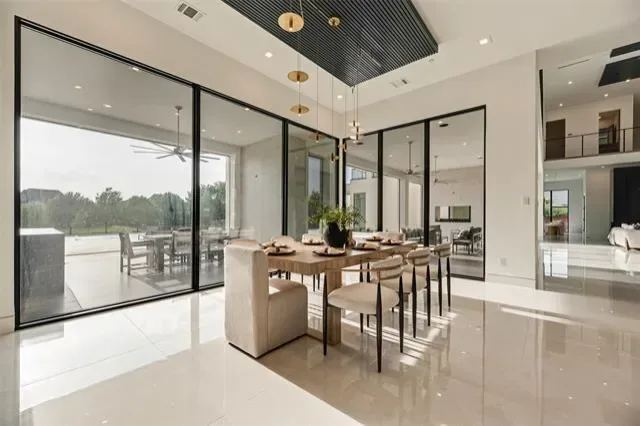 Nestled on 2.46 acres off Southlake’s iconic, tree-lined White Chapel Blvd, this extraordinary east-facing gated estate blends modern design with unmatched luxury &' boasts 8 bedrooms &' 11 bathrooms. A grand circular drive &' porte cochere set the stage for unforgettable arrivals, while the dramatic cantilevered entry door welcomes you into a light-filled interior. Designed to impress, the great room features soaring ceilings &' a stunning colored water mist fireplace made of natural stone with 130 inch video wall system. The dining room showcases temp-controlled wine storage, while the showpiece kitchen boasts a large island, natural stone counters, Wolf 6-burner induction cooktop, double Wolf ovens, built-in Thermador refrigerator-freezer &' fully automated Miele coffee maker. A fully equipped prep kitchen offers add''l appliances, walk-in pantry &' breakfast area. The owner’s suite is complete with double-sided water mist fireplace &' spa-inspired bath featuring a freestanding tub, walk-in shower with dual heads, 2 private water closets &' custom walk-in closet. The main home offers 7 spacious bedrooms, each with its own ensuite, custom closet &' private patio or balcony access. 3 bedrooms, including the primary &' a jr suite, are located down, with a jr suite &' 3 add''l bedrooms up. A charming guest house completes the estate with full kitchen, living, bedroom &' bath—ideal for guests or multigenerational living. Accessible by elevator, the upstairs has a game room with wet bar, media room, exercise room &' multiple balconies overlooking the property. A 2nd laundry upstairs adds convenience. The resort-style backyard features a sparkling pool &' spa, covered patio with gas fireplace, outdoor kitchen with Artisan appliances, fire pit &' outdoor shower. Add''l highlights include 1,400 SF of unfinished space, 4-car garage with metallic epoxy floor, pet washing station &' pre-wiring for window shades. This is luxury living at its finest in one of Southlake’s most coveted locations!