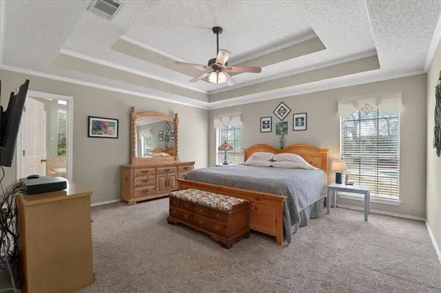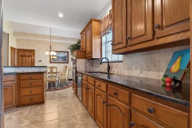 The backyard completes the experience with a sparkling pool, open green space, and peaceful pond views that create a sense of privacy and calm. It’s the kind of setting where gatherings come naturally and quiet moments feel more meaningful.