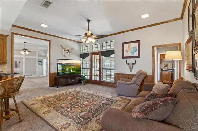 Beyond the main home, this property truly sets itself apart. The expansive detached structure, designed to complement the original home, offers a large covered patio, a private bedroom and full bathroom, and a Texas sized garage built to accommodate multiple vehicles, an RV, or your boat. It’s a rare feature that adds both function and flexibility.