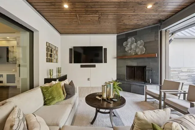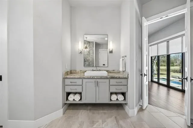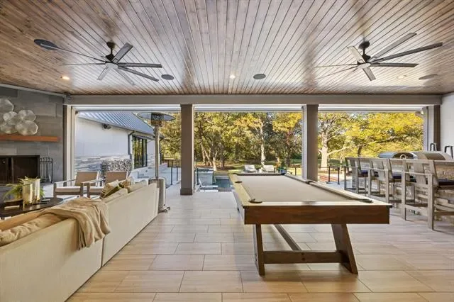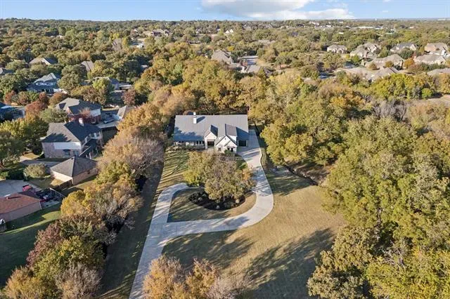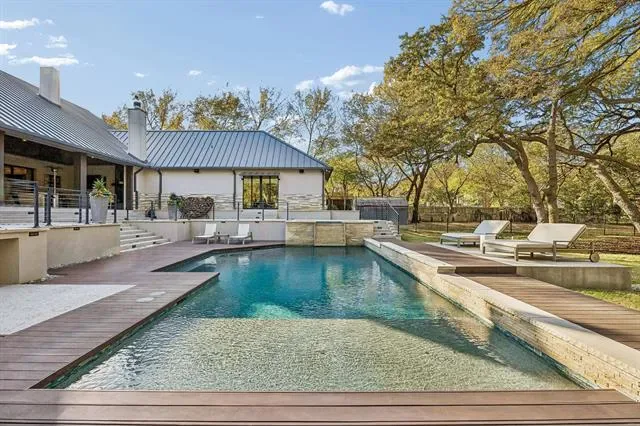 Set on more than three private acres with mature trees throughout, this Southlake estate offers a rare opportunity to own a meaningful piece of local history. The property carries ties to the original Johnson family farmhouse, with the original storage barn still standing as a reminder of its past. Expansive acreage and carefully considered architecture create a residence that balances refinement with livability. Natural light and curated finishes define the interiors, where each space connects seamlessly. A well-appointed kitchen anchors the main living areas, featuring floor-to-ceiling cabinetry, two substantial islands with striking natural stone, integrated wine refrigeration, and Miele appliances including dual dishwashers. The kitchen opens to the family room and dining room in a cohesive open-concept layout. A wall of sliding glass doors extends the living space to the covered patio for seamless indoor-outdoor living. The floor plan includes a private study overlooking the front grounds, a separate bedroom with adjoining den positioned away from the primary suite and two secondary ensuite bedrooms, well suited for multigenerational living or guests. Upstairs, a media room with full bath allows the home to function primarily as a single-story residence while offering additional recreation space. The primary suite opens directly to the backyard with a stunning view. The covered patio with motorized screens, fireplace, outdoor kitchen, and pool table serves as year-round living space. Beyond, the pool is framed by an ipe wood deck and fire pit, offering a private backdrop of green space and mature trees. The third garage bay is configured as a heated and cooled gym and golf simulator, while the two-car garage features custom cabinetry, shelving, and epoxy floors. A spacious utility room and mud room enhance everyday functionality. Defined by privacy, scale, and heritage, this estate offers a rare combination of land and understated refinement.