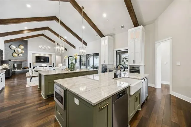 Built-in Wine Cooler, Cable TV Available, Chandelier, Decorative Lighting, Double Vanity, Eat-in Kitchen, Flat Screen Wiring, High Speed Internet Available, In- Law Suite Floorplan, Kitchen Island, Open Floorplan, Pantry, Smart Home System, Sound System Wiring, Walk- In Closet(s)