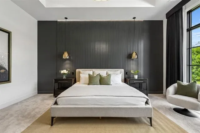 A Sanctuary of Modern Luxury – Nestled on a rare one-acre lot surrounded by trees, parks, and private roads, this newly completed custom home redefines the essence of modern luxury living. Designed for those who seek the ultimate in elegance and privacy, the residence boasts an expansive open-concept layout that integrates seamlessly with generous outdoor living spaces.