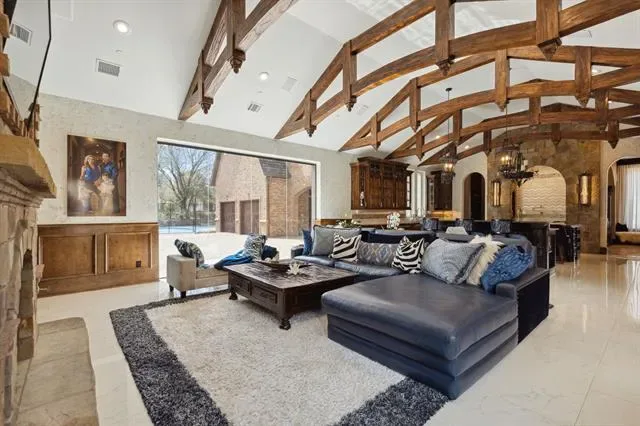 In the heart of Southlake, behind tree lined streets and quiet prestige, stands your modern castle at 1161 La Mirada Court. Set on nearly two acres, this 13,922 sq ft estate blends grandeur with warmth and imagination. Built in 2010 and exquisitely reinvented in 2021, it showcases artisan finishes and luxe accents from Vanderpump Alain, bringing couture detail and sculptural beauty into every room. With 7 bedrooms and 12 baths, the home offers dramatic architecture balanced by inviting, intimate spaces, all within award winning Carroll ISD. The first floor primary suite is a serene retreat with a spa like bath and stunning two story boutique closet. A grotto spa and pool flow seamlessly indoors to out, creating resort style living alongside a private tennis court and elegant 2 bedroom guest house. Every detail whispers romance, this is more than a home; it is a Southlake legacy.