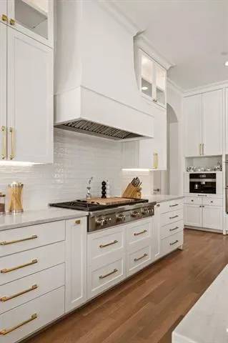 Custom built by Hawkins-Welwood, this home highlights beautiful craftsmanship at every turn. Features include hardwood oak floors, custom cabinets and shelves, mont blanc quartzite kitchen counters, a Wolf 48 inch range top with four burners and a grill, Monogram double ovens, a Sub-Zero refrigerator, a Miele built-in coffee maker, and more.