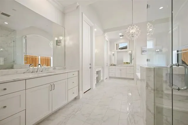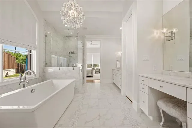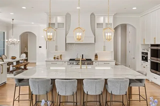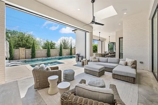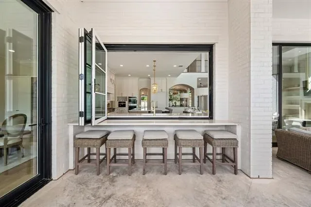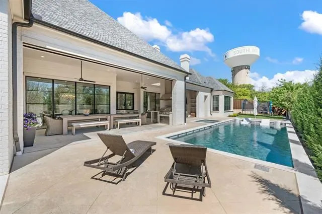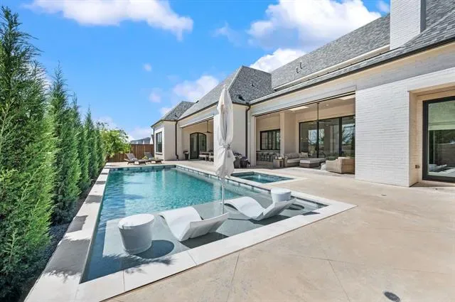 Experience Home at its finest! Luxury custom-built home offering easy indoor-outdoor living with sliding glass doors leading to a covered patio, pool, spa, kitchen, and attached casita. Bright, open living areas create a welcoming setting for relaxing or hosting. The gourmet kitchen includes a large island, high-end appliances, a walk-in pantry with prep space, and a walk-up pool bar. The first-floor primary suite features a luxury bath and two walk-in closets with access to the front office. Upstairs provides three ensuite bedrooms, a game room, and a media room. Three-car garage with added storage, walk-in attic space, and smart home upgrades. Part of the sought-after Carroll ISD.
