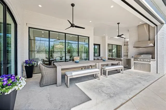 Covered Patio/Porch, Rain Gutters, Lighting, Outdoor Kitchen