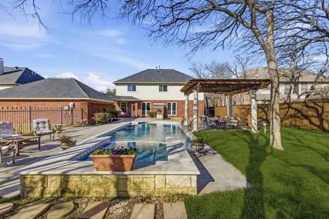 Step outside to your private backyard, oasis, featuring a heated spa, waterfall, elegant water features, color-changing lights, and a large pool, perfect for entertaining, volleyball, and swimming laps. Relax under the pergola or utilize the separate backyard area, ideal for gardening, play, or pets. Pool was renovated in 2023 with upgraded peerless pebble surface, a new heating unit, filter pumps, and is fully programmable via an app on your phone. This home offers the rare combination of move-in-ready luxury and a world-class outdoor lifestyle in one of Southlake’s most sought-after neighborhoods.
