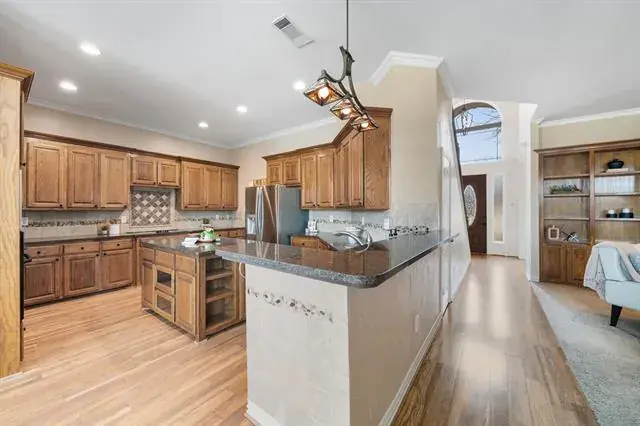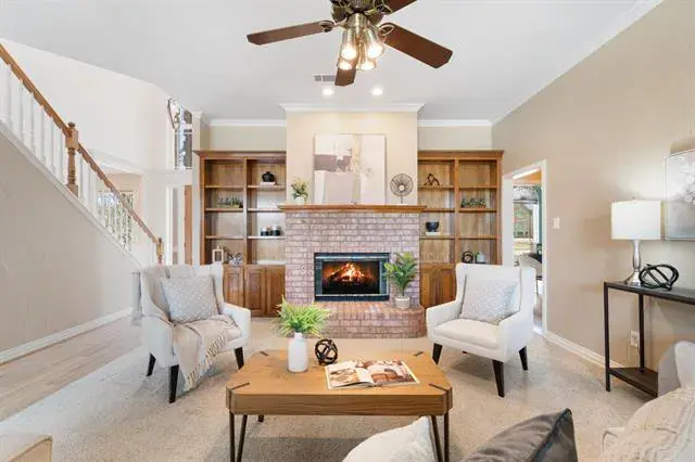 Discover this exceptional one-owner home in the prestigious Napa Valley Estates of Southlake, offering an elegant open-concept design with soaring ceilings, abundant storage, and an expansive wall of windows that fills the home with incredible natural light. Perfectly blending sophistication and functionality, this residence features 5 spacious bedrooms plus a dedicated office, with two bedrooms and two full baths conveniently located downstairs. The inviting living room showcases a stunning double-sided fireplace, creating warmth and ambiance throughout the main living spaces.