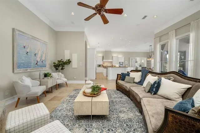 The chef’s kitchen is equipped with premium Viking stainless steel appliances, a gas cooktop, double ovens, dual dishwashers, expansive prep surfaces, and an entertainer''s island that anchors the space with both beauty and function. The primary suite is privately positioned and features a generous sitting area, spa-inspired bath, and custom walk-in storage. High ceilings, quality millwork, and thoughtfully designed sightlines enhance the home’s open yet intimate feel.