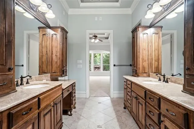 Built by award winning custom home builder, Jeffrey Homes, welcome to this beautiful home in the Palomar Estates of Southlake. Trends may come and trends may go, but beautiful nail-down hardwood floors, just beautifully refinished, along with natural Travertine stone flooring, say, “We’re a timeless classic, and never go out of style.” Open floorplan with FOUR FIREPLACES! Family room with fireplace and builtins, Great Room with 2nd fireplace, Study with 3rd fireplace, with an 4th outdoor fireplace on large covered patio!