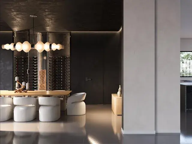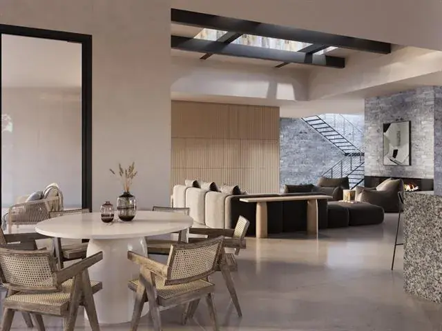 Beyond the treeline, more than 12,000 square feet of intentional living unfolds in a seamless blend of desert contemporary architecture and timeless detail. The six-bedroom layout, including a private casita, was designed for both entertaining and retreat – featuring a grand great room filled with natural light, a covered terrace with motorized screens and outdoor kitchen, a plunge pool off the primary balcony, a walk-out basement with speakeasy and theater, and a discreet safe room, all finished with a seven-car garage that unites utility and sophistication. The property’s nearly nine acres are eligible for an agricultural exemption, offering long-term tax advantages and enduring value.