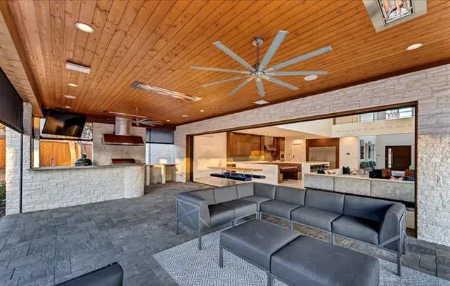 Attached Grill, Covered Patio/Porch, Rain Gutters, Lighting, Outdoor Living Center, Sport Court
