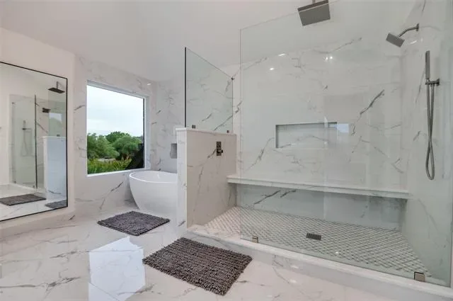 The second level features a spacious loft, two additional bedrooms and bath, and an oversized owner’s suite with high ceilings, abundant natural light, and a spa-like soaking tub, multi-control rain shower, white marble vanity, and custom walk-in closet.