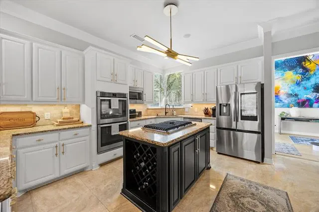 Built-in Features, Built-in Wine Cooler, Cable TV Available, Cathedral Ceiling(s), Chandelier, Decorative Lighting, Double Vanity, Eat-in Kitchen, Granite Counters, High Speed Internet Available, Kitchen Island, Loft, Pantry, Vaulted Ceiling(s), Walk- In Closet(s), Wet Bar, Second Primary Bedroom