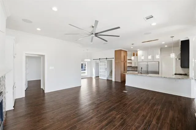Situated on nearly half an acre in Southridge Lakes, this extensively renovated 4-bedroom home offers over 3,100 square feet with two spacious living areas, two dining areas, and a versatile bonus room designed for flexible living. The kitchen has been completely reimagined with custom cabinetry throughout, quartzite countertops, updated lighting, and a premium gas range with dual ovens. A built-in column refrigerator paired with a matching column freezer creates a true chef’s layout with exceptional storage and a seamless, high-end look. All appliances have been replaced, and the cabinetry provides abundant storage with a clean, modern aesthetic while maintaining elevated finishes. The space opens seamlessly to the main living area, creating ideal flow for everyday living and entertaining. The primary suite is generously sized and offers direct walk-out access to the pool. The fully remodeled spa-inspired bathroom features dual shower heads in an oversized walk-in shower, a fireplace positioned above the soaking tub, updated tilework, new countertops, and refined modern finishes throughout. The entire home is served by a tankless water heater, providing continuous hot water and improved efficiency. The primary closet has been upgraded with custom built-ins and drawer systems for optimal organization.