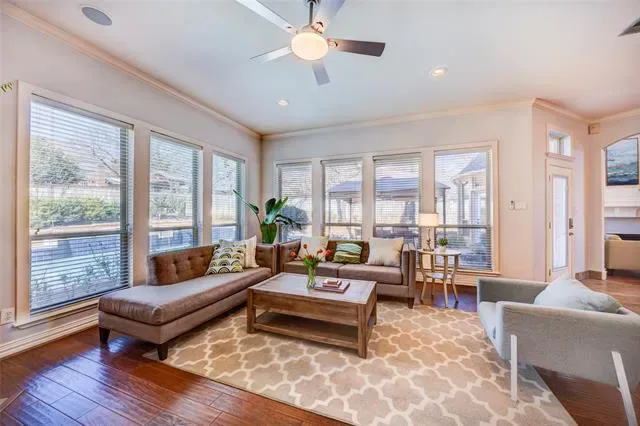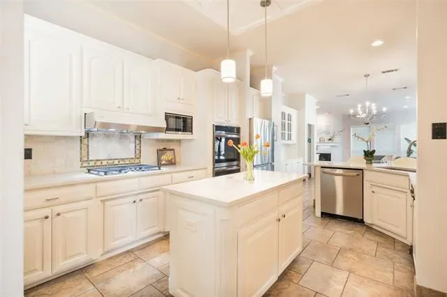 This beautifully maintained two-story residence exudes style, sophistication, and thoughtful design. Subtle interior level transitions provide natural separation of space and architectural charm while maintaining seamless flow, offering privacy and flexibility for everyday living or entertaining. Ideally suited for multigenerational living, hosting guests, or work-from-home arrangements. Light-filled interiors showcase soaring ceilings, rich hardwood floors, plantation shutters, and crown molding, with multiple elegant living areas, including an oversized raised study and a spacious media room. The well-appointed kitchen features repainted cabinetry, updated countertops, and newer appliances, complemented by fresh paint in key rooms and on select exterior elements. The home effortlessly blends open-concept living with intentional separation of spaces, creating warmth, style, and sophistication. Outside, enjoy a private retreat with a pool and spa, gazebo, and a striking front water fountain that makes a lasting first impression. Move-in ready, this property represents a rare opportunity in one of Southlake’s most coveted communities, combining architectural charm, upscale finishes, and functional elegance.