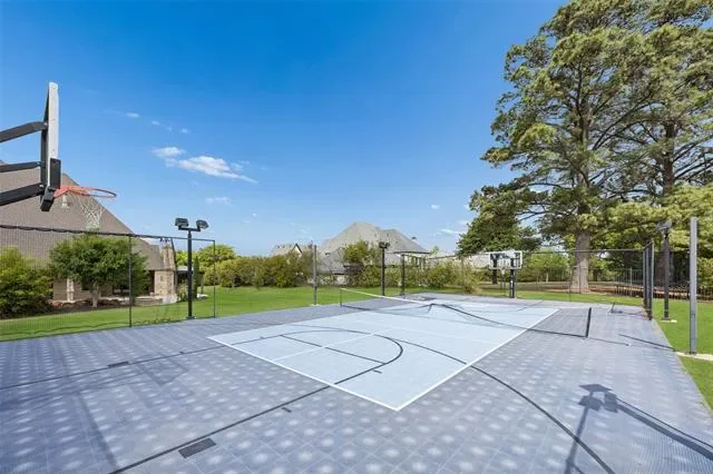 Basketball Court, Covered Patio/Porch, Rain Gutters, Lighting, Private Yard