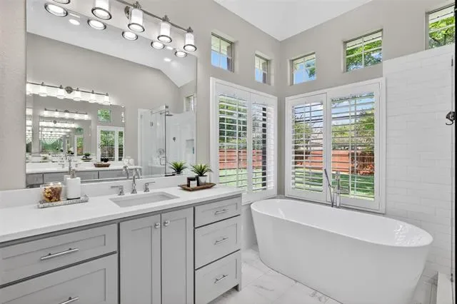 Step outside to a peaceful backyard retreat by the pool and spa after a long day. Enjoy the convenience of being within walking distance to Carroll Senior HS, along with easy access to shopping and dining. The long driveway with side garage can park many cars perfect for a big gathering. Hard to find an updated home like this one on an almost half acre corner cul de sac in prestigious Stone Lakes estate.