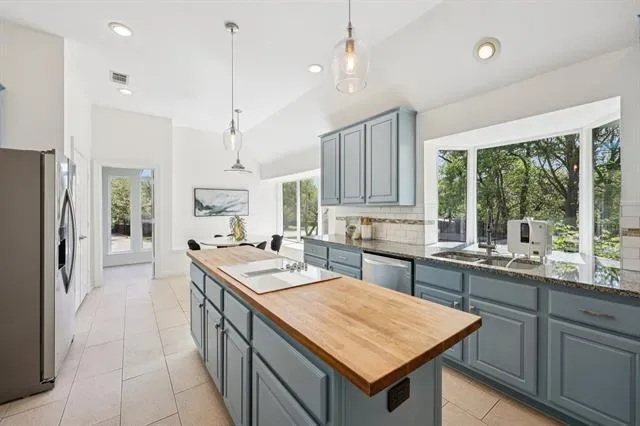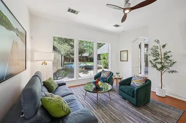 Beautiful one story home on a .44 acre lot in award-winning Carroll ISD! This home has everything you’ve been looking for including four spacious bedrooms, two living areas, two dining areas and a separate room attached to the back of the garage that could be used as an office, workout room or craft room! The garage is detached, but has a covered walkway into the kitchen. Freshly painted inside, nail down bamboo floors and new windows installed in 2023, granite counter tops in kitchen, fresh designer lighting fixtures, new pool filter, pump and heater. Brand new backup generator installed in 2024. Large backyard with pool and fire pit area, great for outdoor entertaining. Enjoy all of the amenities Stone Lakes has to offer including a community pool and clubhouse, tennis courts, playground, basketball courts and walking and jogging paths. Close to the heart of Southlake and walkable to Carroll Senior High School. This home is ready for its next chapter! Most of the furniture, all new in 2023, has the option to be purchased as well.