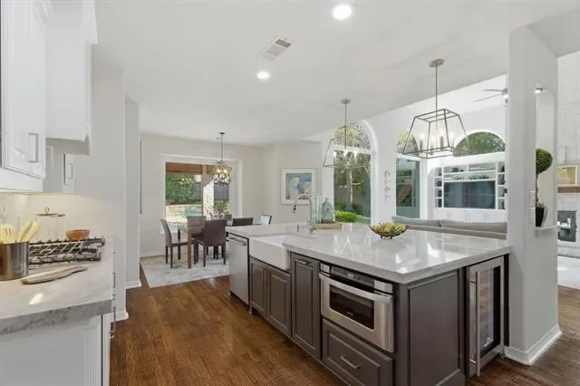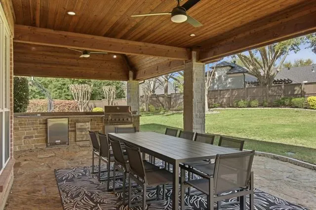 Discover the perfect blend of elegance and functionality in this fully renovated and move-in ready Southlake residence, located in the highly desired Timarron-Strathmore community. The true showstopper is the resort-style backyard. An extraordinary covered deck provides a complete outdoor living experience with a built-in kitchen, dining area, and comfortable lounge space. This entertainer''s dream overlooks a sparkling swimming pool, a private basketball court, and a beautifully landscaped backyard.