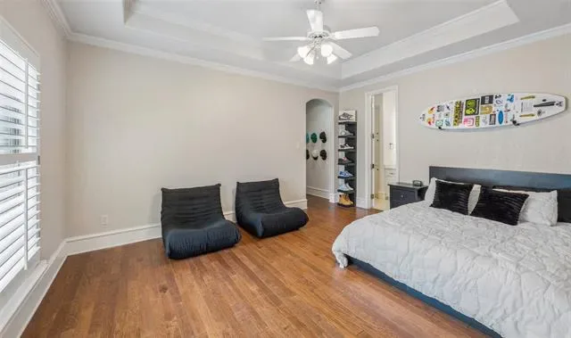 The luxurious primary suite offers a true private retreat with serene backyard views, while a first-floor guest suite provides ideal accommodations for visitors. Upstairs, the home continues to impress with a spacious game room with wet bar, dedicated media room, and three additional bedroom suites.