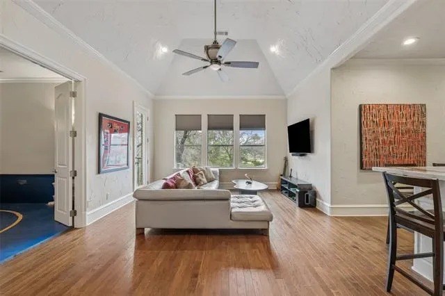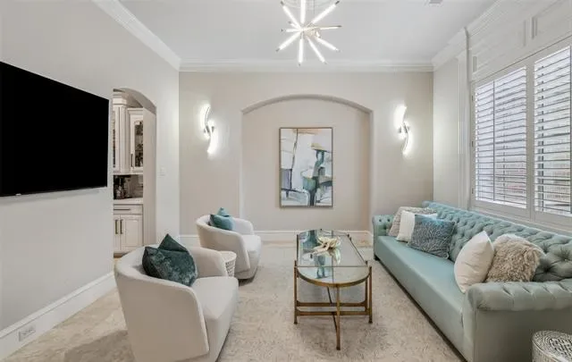 A grand entry introduces soaring ceilings, rich hardwood and marble flooring, a sweeping curved staircase, and extensive custom millwork, creating a refined yet welcoming atmosphere. Expansive windows frame stunning views of the backyard and golf course beyond while filling the home with natural light.