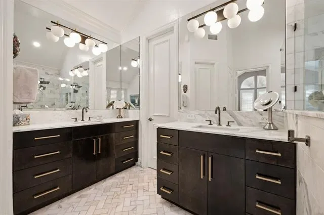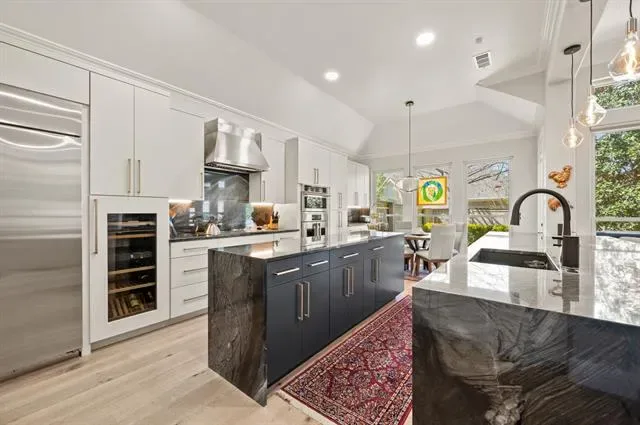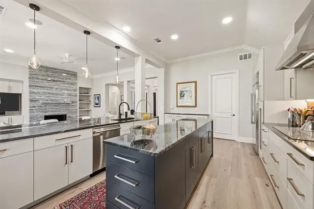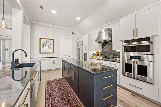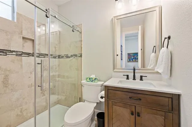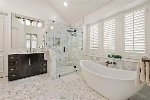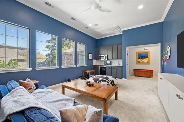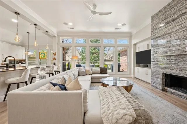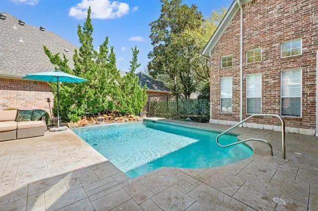 This beautifully renovated two-story home offers 4 bedrooms, 3.5 baths, and a flexible floor plan ideal for everyday living and entertaining. Natural light fills the home, and the fully remodeled chef’s kitchen features a waterfall island, stone countertops, custom cabinetry with soft-close doors and drawers, GE Monogram appliances, induction cooktop, built-in refrigerator, Liebherr wine refrigerator, and coffee bar area. The kitchen opens to the main living area, highlighted by a floor-to-ceiling Italian travertine fireplace with custom built-ins. Extensive updates include new flooring, designer lighting, updated fixtures, hardware, and energy-efficient Andersen windows. A private office provides an ideal work-from-home space, while the upstairs game room includes a marble snack bar, microwave, and beverage refrigerator. The primary suite is located on the main level and features a fully remodeled spa-inspired bath with Italian marble finishes, frameless glass shower, and custom closet system. Secondary bathrooms have been updated with quartz counters, custom cabinetry, and frameless showers. A standout feature is the attached casita with a private bedroom and full bath, ideal for guests or multigenerational living. The utility room includes granite countertops, sink, and extensive storage. The outdoor retreat features a pool with waterfall, landscaping, and patio areas for outdoor living and entertaining. The Timarron HOA includes community pools, tennis and pickleball courts, fishing pond, walking trails, playgrounds, fitness center, and clubhouses, with optional Timarron Country Club membership for golf, tennis, dining, and social activities. Timarron Crescent Royale also includes front yard maintenance. Located in Southlake near The Marq, Champions Club, Bicentennial Park, and Southlake Town Square shopping and dining, and served by highly rated Carroll ISD. Convenient access to Westlake, Las Colinas, Alliance Texas, and DFW Airport.