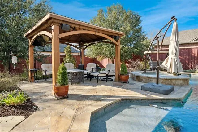 Welcome to this beautifully cared for residence on a corner lot in a cul-de-sac, filled with thoughtful updates and warm, inviting spaces. The home has been meticulously maintained and thoughtfully improved both inside &' out. Inside, the extensive upgrades including ALL new energy-efficient windows and two rear glass doors installed in 2023. Wood flooring added throughout key living areas, including the primary suite, dining room, guest room, office, bonus room, &' upstairs landing. The updated kitchen offers quartz countertops, sinks, backsplash, hardware, double wine refrigerator, Bosch dishwasher, induction cooktop &' SS hood. The butler’s pantry improvements include a custom stone wall &' additional quartz surfaces. Bathrooms have been refreshed with quartz countertops, fixtures, and updated tile. Mechanical improvements include 3 new HVAC units and 2 furnaces (2022–23), a newer water heater (2021), fresh interior paint, and upgraded lighting throughout. A complete pool renovation features a salt water pool with PebbleTec® surface, new tile and stone coping, LED lighting, water feature and new pool heater. The expanded pool deck is finished in Oklahoma flagstone, leading to a gazebo with a ceiling fan, mounted heaters and TV—all convey and perfect for all weather outdoor entertaining. The grounds have been professionally re-imagined with a full landscape redesign by a Master Gardener, including widened beds and entirely new plantings. The property was selected as one of only five featured gardens in the 2024 Southlake Garden Tour! A privacy fence &' upgraded outdoor lighting complete the backyard retreat. The garage features epoxy floors, ceiling-mounted storage, custom cabinetry, and a new entry door &' electronic lock. Located in Timber Lake neighborhood with amenities including pool, clubhouse, playground, tennis courts, pickleball, lakes, greenbelt, &' walking trails-all just minutes from Southlake Town Square, shops, restaurants &' major highways. Carroll Schools!