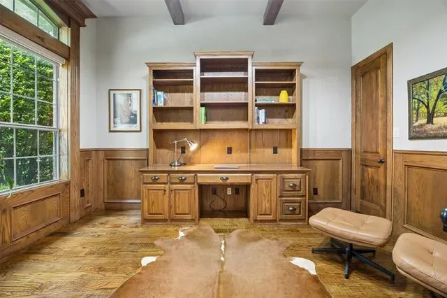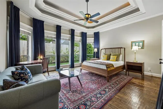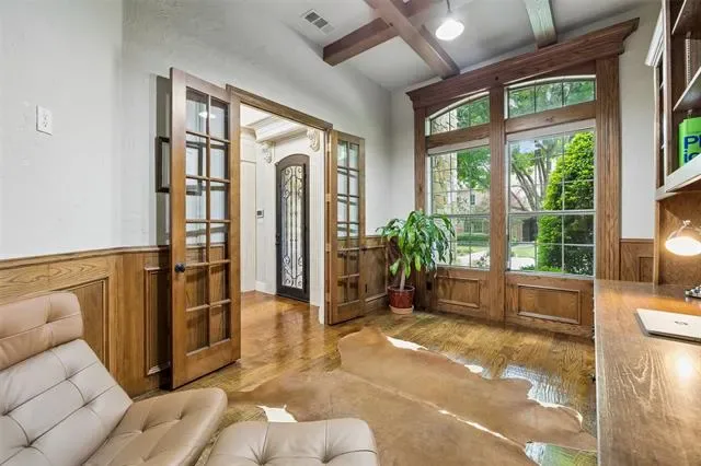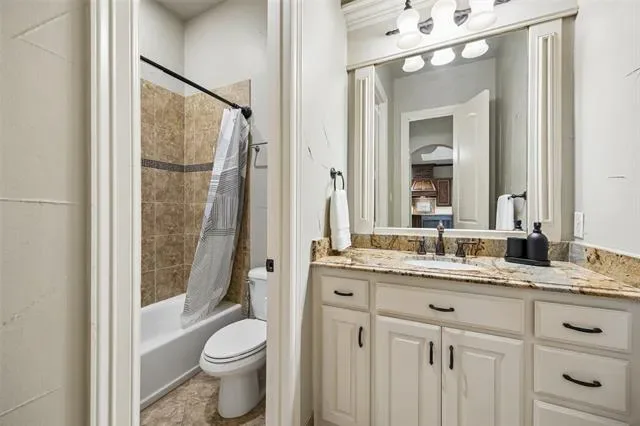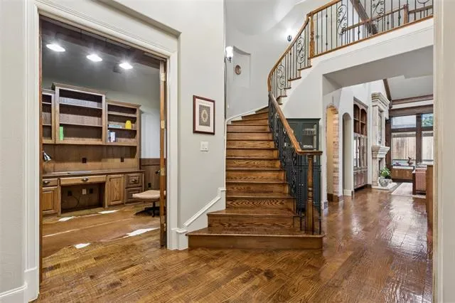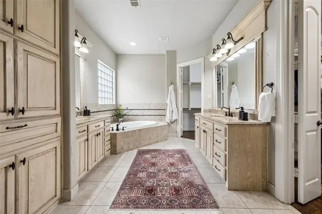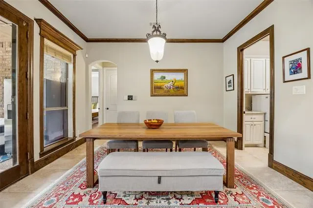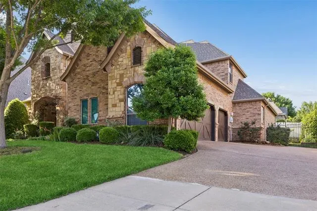 Stunning 4-bedroom, 3-bath home in the desirable Tuscan Ridge addition of Southlake offering approximately 3,644 square feet of living space with quality construction, timeless finishes, and a thoughtfully designed floorplan. From the moment you enter, you are welcomed by a foyer and a spacious living room open to the second floor, creating a bright, open atmosphere. The living area showcases a double mantle fireplace, floor-to-ceiling north-facing windows, custom built-ins, gorgeous crown molding, and a convenient wine bar, adding both style and functionality. The open-concept kitchen, living, and breakfast area serves as the heart of the home, featuring granite countertops, gas cooktop, double ovens, pantry, and abundant cabinetry, perfect for gatherings and daily living alike. The large private primary suite offers a relaxing retreat with coffered ceiling and a spacious bath complete with dual vanities, jetted tub, separate shower, and two generous walk-in closets. A secondary main-level bedroom and full bath are thoughtfully positioned for added privacy with no shared walls to the primary suite, ideal for guests or multigenerational living. A dedicated study with French doors provides a quiet workspace, and includes a WIC. An elegant formal dining or additional living room provides flexible space for entertaining. Upstairs includes a large media and game room with wet bar, mini fridge, and microwave, along with two additional bedrooms. Gorgeous hand-scraped hardwood floors extend throughout the main and upper levels, with carpet in the media room. Outdoor living features a covered patio and a low-maintenance pool-ready backyard with fruit trees and a raised garden bed, ideal for herbs and vegetables. Additional highlights include a 3-car garage with epoxy flooring to accommodate recreation needs and creative pursuits (vehicles too), beautifully landscaped lot, and access to highly rated Carroll ISD schools. Video and 3D tour online!