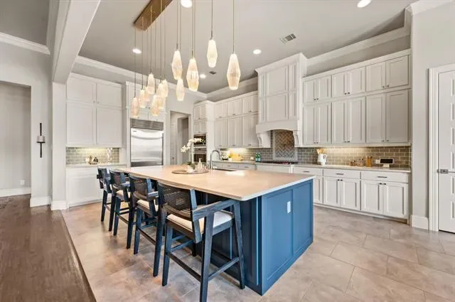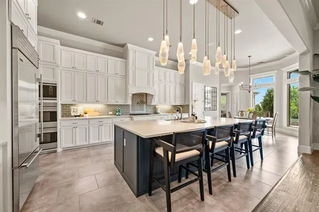 Experience effortless luxury in this stunning ONE- STORY home in Southlake’s Hidden Knoll community. Thoughtfully designed with an open- concept layout and seamless indoor-outdoor living. This four-bedroom, four bath residence features a spacious main living area with expansive sightlines, ideal for both everyday living and entertaining. Custom built finishes throughout including the natural light filled kitchen with oversized island and extended cabinetry for storage, Sub Zero fridge, gas cooktop w pot- filler and walk in pantry. A secluded primary bedroom is separate from the other bedrooms and has a stunning bathroom with recently updated lighting and California closet built – ins. A secondary game room offers added flexibililty and privacy, perfectly positioned to capture serene views of the greenbelt that extends behind and along the side of the property. The study has on trend shiplap paneling and vaulted ceilings.