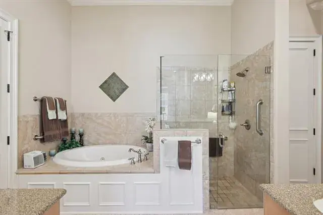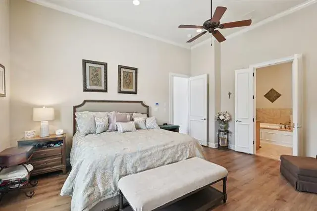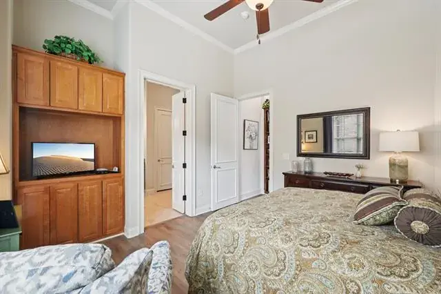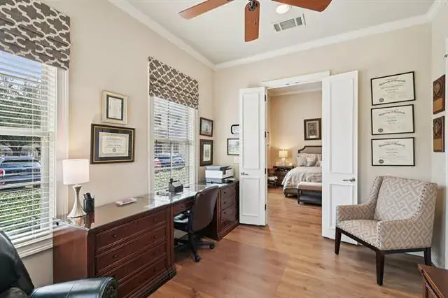 Welcome to Watermere at Southlake, a luxury senior living community where luxury and an active lifestyle come together in a beautifully designed single-story villa with the best location and views from every direction. This thoughtfully designed home offers an open floor plan filled with natural light, stunning views from every room, tall ceilings, stunning floors and spacious rooms throughout. The spacious living area features cedar beam accents and tall ceilings, creating a warm and inviting atmosphere. The kitchen connects seamlessly to the living and dining space and offers stainless steel appliance with a gas cooktop, abundant cabinetry and expansive prep space – ideal for entertaining and daily living. Master suite is private with ensuite bath and adjoining office or exercise room. Guest bedroom is separate with a full ensuite bath and walk-in closet, great for overnight guests. Extras include an oversized two-car garage with epoxy floors and cedar doors and a well-appointed laundry room add functionality and storage. Ownership includes full access to Watermere’s extensive resort-style amenities designed exclusively for active adult living. Residents enjoy concierge services, gated security, scheduled classes, social events and organized activities. Community amenities also include a clubhouse, lounge bar, casual café and formal dining, fitness center, indoor pool, billiards room, ballroom, walking areas, and beautifully maintained grounds. Exterior yard maintenance and 24 hour security is included, providing a true lock-and-leave lifestyle. This villa offers a rare opportunity to enjoy senior living in one of Southlake’s most desirable communities.