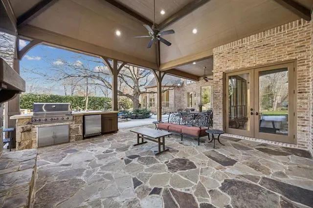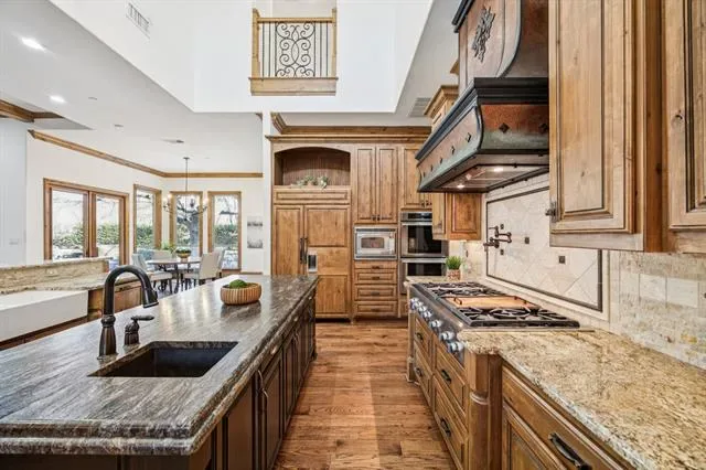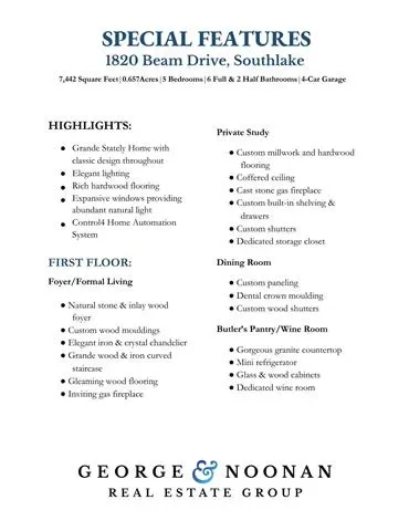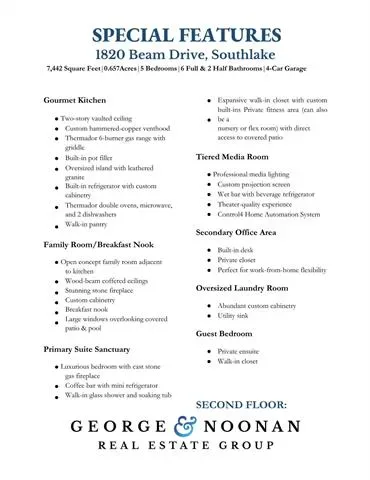 Exceptional by design, extraordinary by nature. Commanding a private, wooded sanctuary in the heart of Southlake''s most coveted neighborhood, this 7,442 sq ft home presents a rare opportunity to experience refined living. Exemplary architectural distinction exudes luxury across 5 ensuite bedrooms &' thoughtfully curated spaces designed for the most discerning homeowner. The gated porte cochère motor court establishes immediate distinction, offering privacy &' a refined sense of arrival. Step inside to discover a thoughtfully designed floor plan featuring formal living &' dining rooms adorned w elegant lighting, rich hardwood floors, and luxurious accents. The gourmet kitchen stands as a culinary masterpiece, showcasing premium appliances, an oversized island w leathered granite, &' a walk-in pantry. The adjacent breakfast room provides an inviting setting for casual family meals, while the private study—complete with custom built-ins and a cast stone fp—offers a serene sanctuary for work. The 1st floor primary suite is a true retreat, featuring a cast stone gas fp, sophisticated dry bar, &' spa-inspired ensuite with 2 vanities, walk-in glass shower, &' soaking tub. The expansive closet w custom built-ins &' dedicated gym space or nursery w patio access completes this luxurious sanctuary. A second first-floor ensuite bedroom accommodates multigenerational living or distinguished guests. Entertainment reaches new heights w the tiered media room on first floor, featuring professional lighting &' custom projection screen, while the upstairs game room w wet bar &' 3 additional ensuite bedrooms provide private retreats for family or guests.The outdoor spaces transform the grounds into a resort-style sanctuary. The covered patio showcases a complete outdoor kitchen, custom stone fp, &' sparkling pool &' spa surrounded by mature landscaping. This exceptional estate represents more than a home—it is a lifestyle statement where every detail delivers comfort, luxury, and functionality.