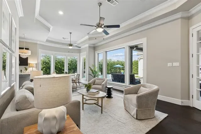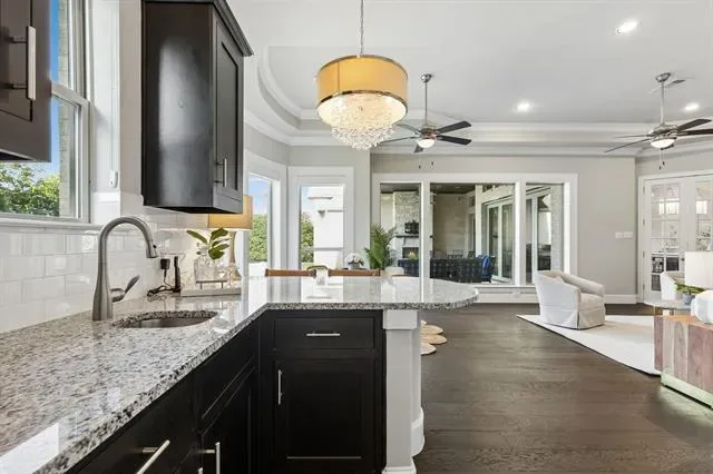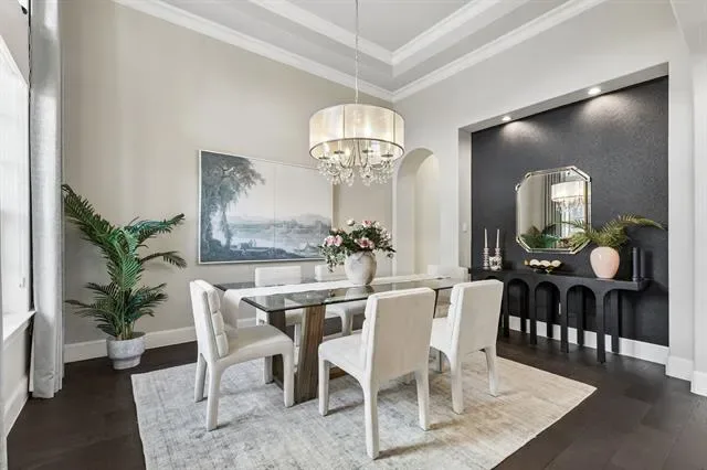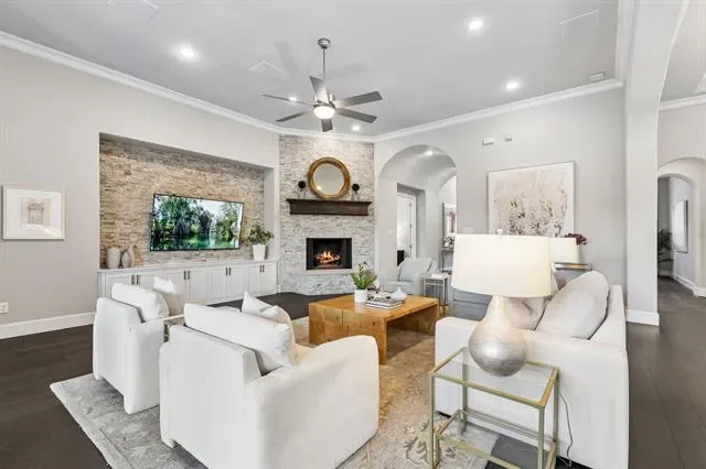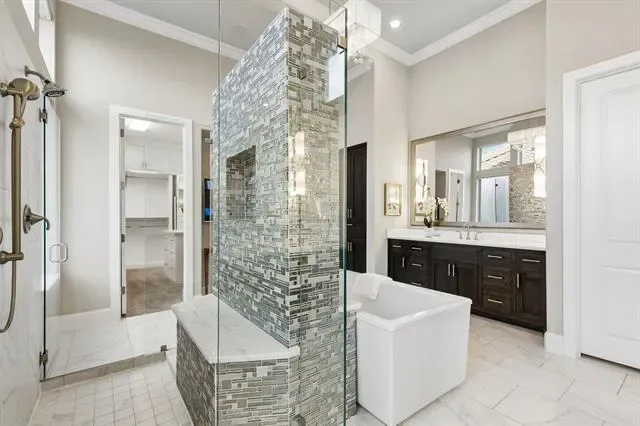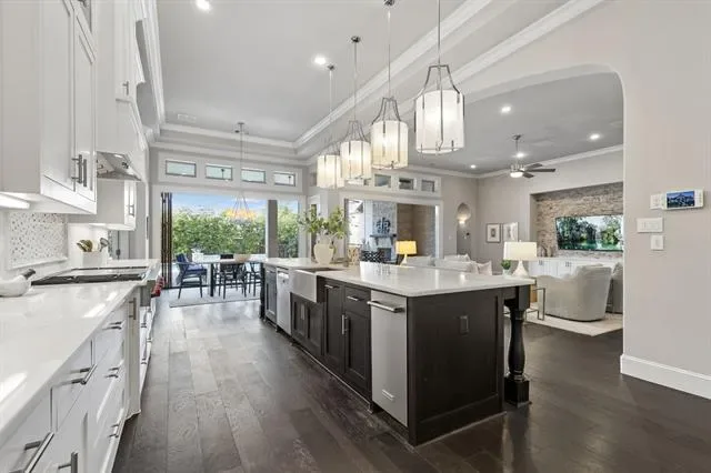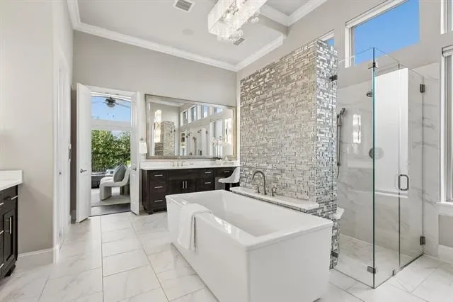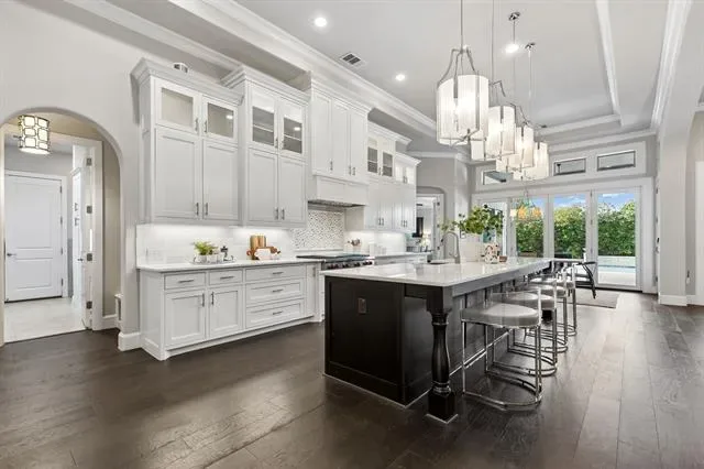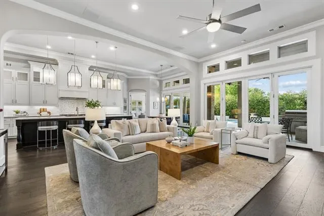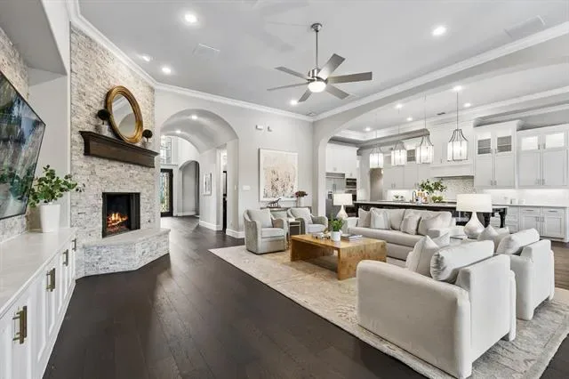 This is the one you have been waiting for! Beautiful single-story masterpiece nestled in Southlake’s highly coveted Winding Creek community. Enter through double metal and glass doors into a wide foyer that invites you into an open floor plan featuring wood floors, designer lighting, and abundant windows. The heart of the home is a chef’s dream kitchen, fully equipped with Wolf and Sub-Zero appliances, marble and quartz countertops, a large island, and gorgeous lighted cabinetry. This space flows seamlessly into a warm great room with a fireplace, as well as an adjacent entertainment wing boasting a game room, bar, and media room. For the professional, a private custom study offers the perfect quiet retreat.