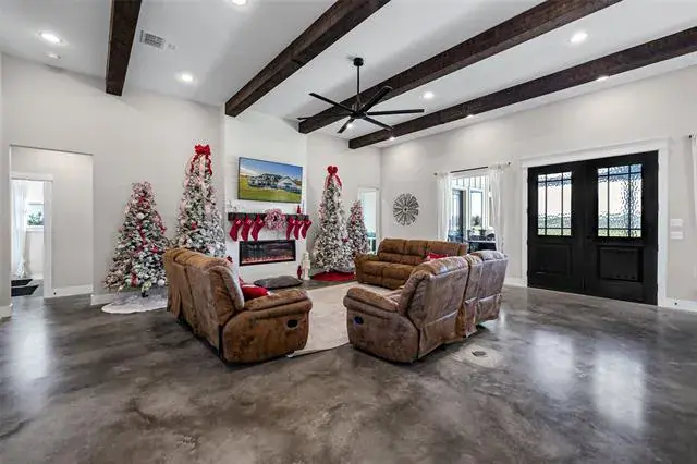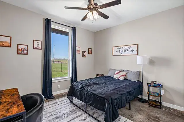 Amazing Price Drop!!! Motivated Seller!!! Welcome to your private oasis!! Stunning Will Steed custom home built in 2023 that sits on 11 AG Exempt beautiful acres, located in Tolar, Texas. This amazing property offers both privacy and convenience and just 15 minutes from Granbury. Animal lovers will appreciate the well equipped chicken coop and the 4 spacious 10×10 stalls for all your livestock, making this property a true sanctuary for animals. Pasture is immaculate and offers wonderful views that surround the property. This amazing property is fenced and cross fenced and level land providing both security and the freedom to enjoy the beautiful outdoors. This incredible property offers a seasonal stock tank, contributing to the beauty and functionality of the land. Oversized three car garage and an extended driveway for well needed additional parking space. Fully sealed insulated home and condition space in the attic that is sure to reduce your utility bills. Property offers 4 bedrooms and 3 full baths perfect for families or those seeking ample space to relax and entertain. As you enter, you’ll be captivated by the view and the open concept design, featuring sealed concrete floors that blend with style and durability. The heart of the home is the gourmet kitchen, complete with quartz countertops, whirlpool stainless appliances and oversized island ideal for meal prep or casual dining, and a fabulous pantry offering abundant storage. Enjoy the coffee bar with two refrigerators that convey. The living room is not just a gathering space, it features an electric fireplace, perfect for cozy evenings, while large windows invite natural light. Explore your game room or office which overlooks the scenic landscape. The split bedroom layout ensures privacy for everyone, making it an ideal design for both family and entertaining guests. Step outside to the amazing covered back patio and take in that view.