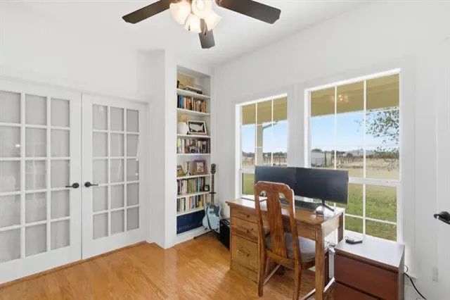 Dream country living on 6 acres in Tolar, Tx! This adorable modern farmhouse features soaring vaulted ceilings and walls of windows that frame peaceful views from every angle. The large living room is anchored by a stunning floor-to-ceiling stone fireplace. The gorgeous open kitchen is a showstopper, boasting two spacious islands, custom cabinetry, and warm wood floors that flow throughout the home. The primary suite is a sanctuary of its own with expansive windows and private access to the wraparound porch, perfect for sunrise coffee or evening sunsets. Both secondary bedrooms offer custom built-ins and generous walk-in closets. A spacious office and an enclosed back patio add even more functional living space. The property is fully set up for your western lifestyle with a brand-new roping arena completed this week, a turnout with loafing shed, and complete with an automatic gate. Move-in-ready for you and all of your animals. Incredible sandy loam soil and usable land. Great location just North of Tolar.