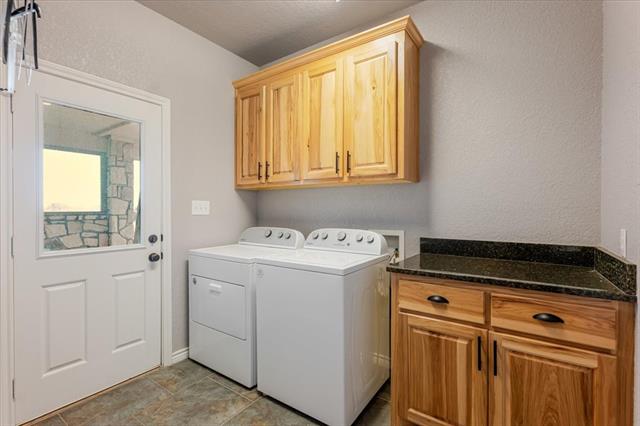 Discover peaceful country living in the heart of Tolar, Texas with this custom-built 2 bedroom, 2 bath home featuring oversized bedrooms, an office, and an inviting open-concept layout. Natural light fills the home through abundant windows, highlighting the large kitchen island, custom built-ins, and spacious double vanities. The primary suite offers a walk-in shower and generous closet space, creating a comfortable and functional retreat. Step outside to the covered patio, perfect for enjoying quiet mornings with your coffee while watching the cows graze, or unwinding with a nightcap as you listen to the sounds of nature. The property offers plenty of room to expand if additional living space is ever desired. A major highlight is the oversized detached garage (shop—over 1,700 sq ft) -complete with a full bathroom, washer &' dryer area, workbench, and dedicated workroom. With utilities already in place, this space could easily be converted into guest quarters, an apartment, hobby space, or additional living area. For those with livestock or agricultural needs, the property includes a large barn with corral and working pens, fenced and cross-fenced, and offers pasture views for days. A deep 380-foot well provides reliable water. All appliances convey, making this home move-in ready. Perfectly situated just minutes from the Historic Granbury Square, Glen Rose, and Stephenville (Cowboy Capital of the World), and a short drive to Lake Granbury, the Brazos River, and excellent medical care in nearby metro areas. This rare Tolar gem offers a perfect blend of comfort, functionality, and peaceful Texas living.