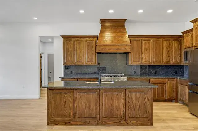 Step inside and you’ll feel it right away. Warm tones, dark-stained cabinets, luxury vinyl plank flooring, and a floor plan that actually makes sense. The kitchen is a standout with a hidden walk-in pantry and plenty of room to cook, gather, and entertain. The living room centers around a propane fireplace insert, giving the space that cozy Texas feel year-round.