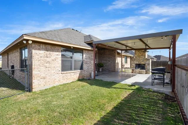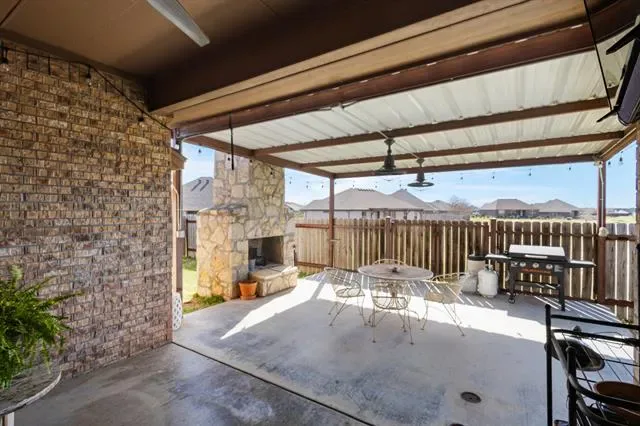 Step outside and experience the true heart of this home — an extended covered patio complete with its own outdoor fireplace, creating the perfect space for year-round entertaining, quiet mornings, or cozy fall evenings under the stars. The fully fenced backyard opens to a lush greenbelt, extending your outdoor entertaining space and offering privacy.