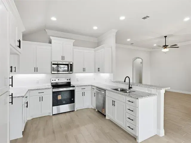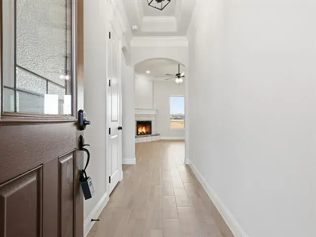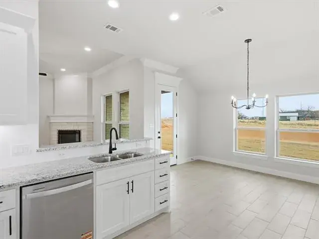 Located in the sought-after Parks of Tolar community, this move-in-ready home was built by respected local builder Al Couto Homes and offers quality craftsmanship with thoughtful upgrades throughout. Wood-look tile flooring, crown molding, granite countertops, and designer finishes create a polished yet welcoming feel. The open living area is filled with natural light and anchored by a stone fireplace, making it ideal for both everyday living and entertaining. The kitchen blends style and function with granite countertops, stainless steel appliances, and a breakfast nook overlooking the backyard. The private owner’s suite is a true retreat, featuring dual sinks with granite counters, a spacious walk-in shower, a separate soaking tub, and a generous walk-in closet. A split bedroom layout provides added privacy for family or guests. Additional highlights include spray foam insulation, granite throughout, crown molding, and an epoxy-coated garage floor. Designed for energy efficiency and long-term comfort, this home offers lower utility costs without compromising on quality. Conveniently located near highly rated Tolar ISD schools and just minutes from parks, shopping, and everyday essentials, this home delivers comfort, style, and practicality in one well-designed package.