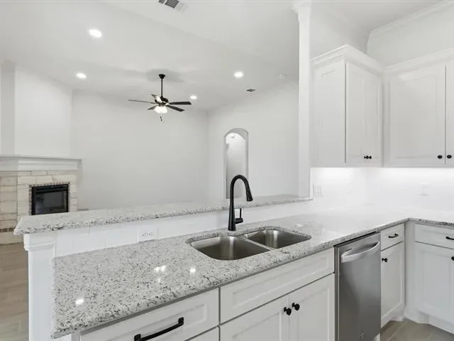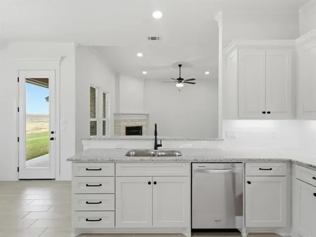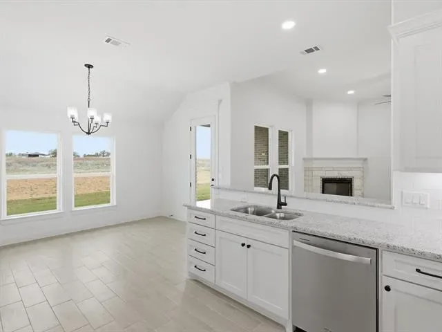 LIMITED-TIME BUILDER INCENTIVE OF $5,000 IN CLOSING COSTS! Located in the desirable Parks of Tolar community, this move in ready home by Al Couto Homes combines quality construction with upgraded finishes throughout. Wood look tile flooring, crown molding, granite countertops, and stylish details create a clean, modern feel from the moment you walk in. The open concept living area is bright and inviting, centered around a stone fireplace that adds warmth and character. The kitchen is designed for both function and flow, featuring granite countertops, stainless steel appliances, and a breakfast area with views of the backyard. The primary suite offers a private escape with dual sinks, a walk in shower, soaking tub, and a spacious walk in closet. A split bedroom layout provides flexibility and privacy for guests or family members. Step out back to a covered patio with enough space to relax or entertain. Additional features include spray foam insulation for energy efficiency, granite surfaces throughout, crown molding, and an epoxy coated garage floor. Located near top rated Tolar ISD schools with easy access to parks, shopping, and daily conveniences, this home delivers a solid mix of comfort, efficiency, and thoughtful design.
