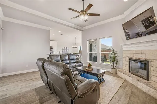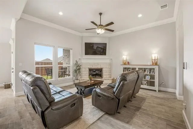 Welcome to your beautifully home nestled on a fully fenced corner lot in the highly desirable Parks of Tolar community. From the moment you arrive, the charming curb appeal, manicured landscaping, &' inviting entry sets the tone for what awaits inside. Step inside to discover an open-concept layout designed for both comfort &' style. Rich wood-look tile flooring flows throughout the home, offering durability with a warm, upscale feel. The spacious living room is filled with natural light &' anchored by a stunning stone fireplace—perfect for cozy evenings or gathering with friends &' family. The kitchen is truly the heart of the home, thoughtfully designed for both everyday living &' entertaining. Featuring sleek granite countertops, crisp white cabinetry, stainless steel appliances, &' ample workspace, it blends functionality with timeless elegance. The adjacent dining area &' breakfast nook overlook the backyard, creating the perfect setting for morning coffee or evening meals. Retreat to the spacious owner’s suite, a private sanctuary designed for relaxation. The ensuite bathroom features dual sink granite vanities, a large walk-in shower, a separate soaking tub, &' a generously sized walk-in closet—offering both luxury &' practicality. Additional highlights include energy-efficient features to help keep utility costs low, newly installed window blinds for added privacy, &' a home security system for peace of mind. The finished garage with epoxy flooring adds a clean, polished touch that’s both functional &' visually appealing. Step outside to enjoy the covered patio—perfect for entertaining, grilling, or simply unwinding at the end of the day. The fully fenced yard provides both privacy &' space to enjoy the outdoors, while recently installed gutters add to the home’s thoughtful upgrades. Located in a welcoming &' growing community, this home offers the perfect blend of comfort, style, &' convenience. Don’t miss your opportunity to make it yours.
