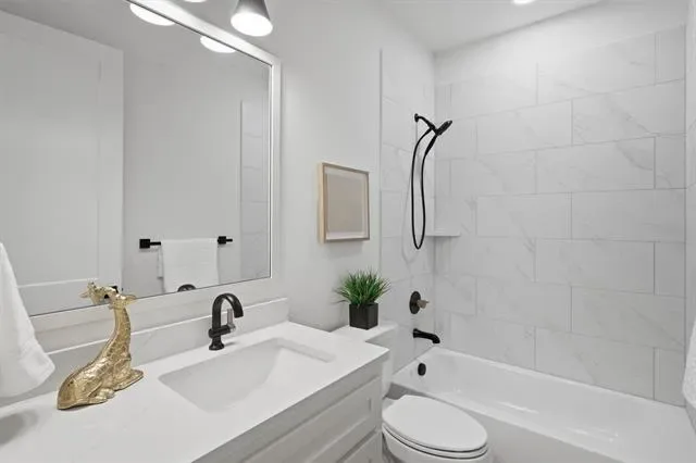 Tucked just off the main living area, a dedicated pocket office provides a functional workspace without taking away from the bedroom count. The primary suite is privately situated and offers a relaxing retreat with a spacious bedroom, dual vanities, and a walk in shower. One additional bedroom is located nearby, while the third bedroom is positioned separately, creating a well designed and versatile layout.