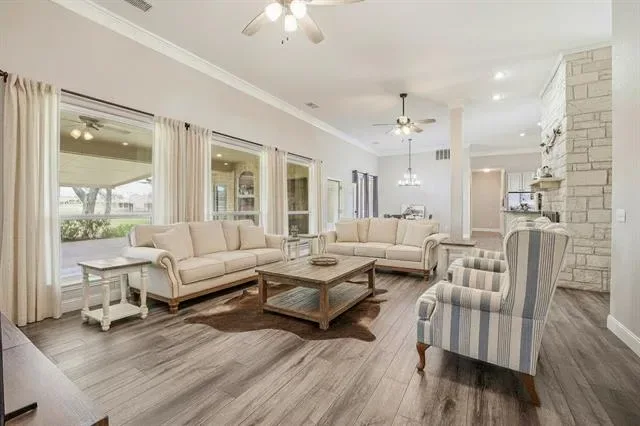 Welcome to your own private Texas retreat, where luxury, functionality & wide-open space come together seamlessly. Situated behind a gated entrance, this beautifully updated 5-bedroom, 3-bath home offers over 4,342 sq ft of thoughtfully designed living space, perfect for everyday comfort & entertaining. From the moment you arrive, the striking stone exterior, metal roof & inviting front porch sets the tone. Inside, soaring ceilings, abundant natural light & a stunning floor-to-ceiling stone fireplace anchor the open-concept living area. Fresh paint, updated flooring, modern fixtures & upgraded hardware create a clean, contemporary feel while maintaining warm, rustic charm. The kitchen is the heart of the home, featuring granite countertops, a large island, stainless steel appliances & ample cabinetry. A water filtration system & water softener add convenience. Spacious bedrooms offer comfort, while the primary suite provides a relaxing retreat & include a one-of-a-kind closet. Upgrades include spray foam insulation, dual-zoned HVAC, updated electrical components & ceiling fans for year-round efficiency. The wood-burning fireplace is plumbed for propane. Step outside to a large, covered patio overlooking scenic acreage, perfect for relaxing or entertaining under Texas sunsets. The insulated shop features commercial roll-up doors, LED lighting & covered overhang for equipment. This property is ready for agricultural or homestead living with livestock barns, irrigated garden, lawn sprinkler system & rich pastureland ideal for grazing or hay production. A stocked pond with solar powered well, 2 additional water wells, two septic systems & a RV hookup provide exceptional functionality. A second home had been gutted & is ready for renovation, offers incredible potential for a guest house or rental. Located just outside Granbury near shopping, dining & lake access, and within sought-after Tolar ISD. Bring your horses, livestock & Texas dreams…this one truly has it all.